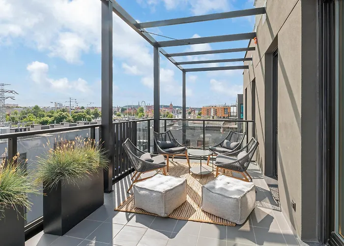 Nadmotlawie Riverside - Parking, Sauna & Gym By Downtown Apartments Gdansk – это отличный вариант для остановки в районе Центр, менее чем в 20 минутах ходьбы от Большой мельницы. В апартаментах также есть терраса с видом на город.